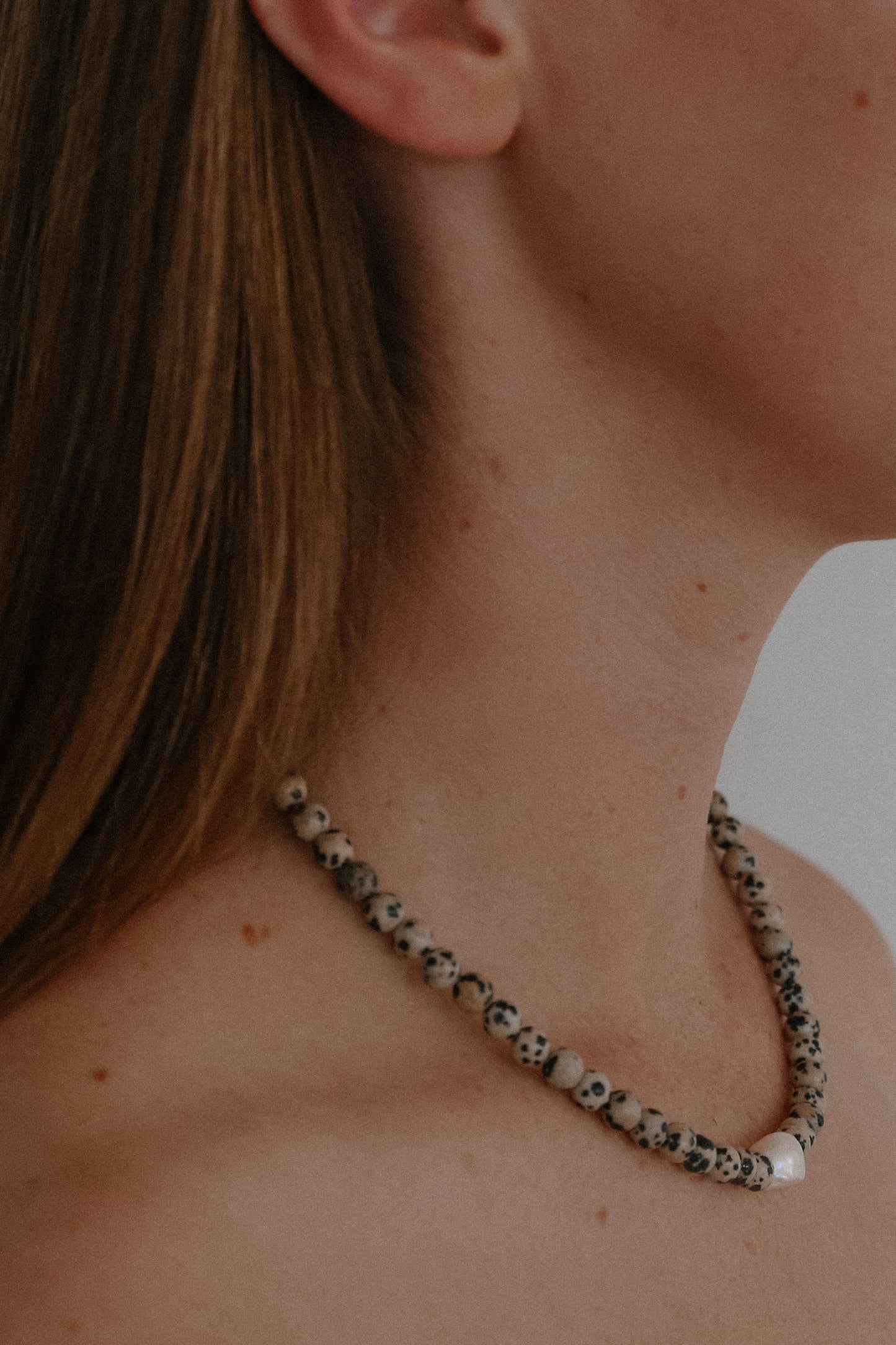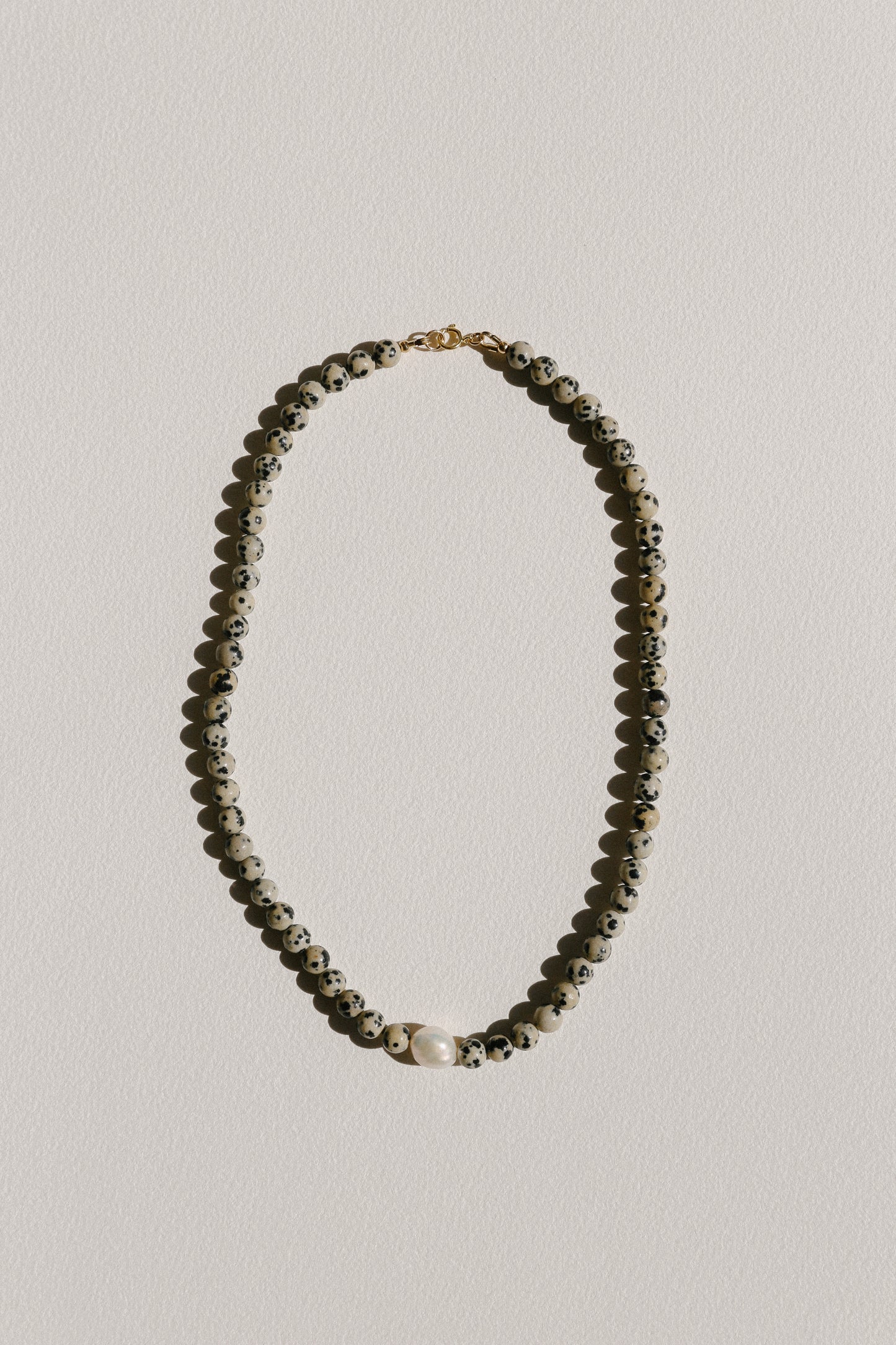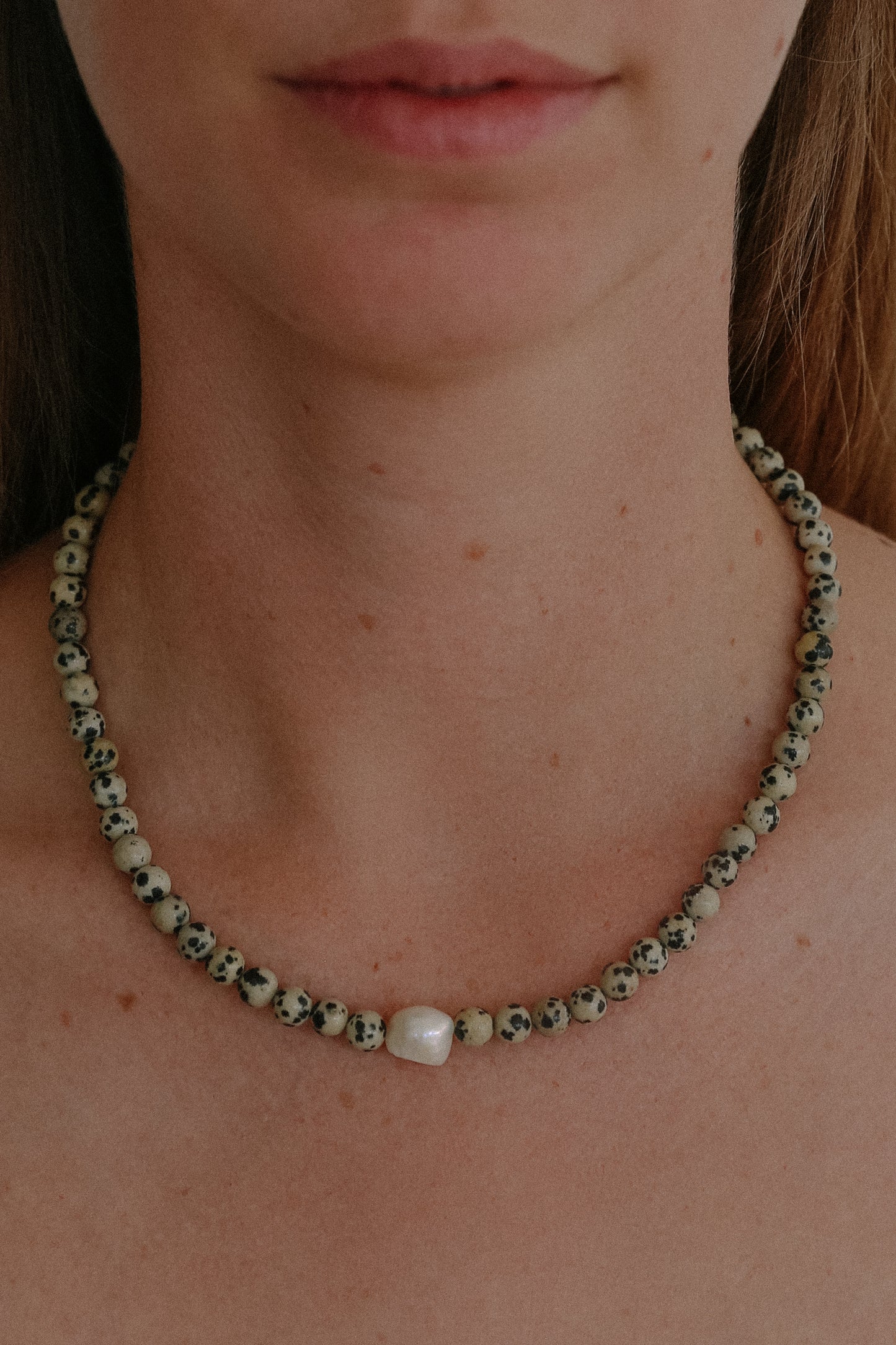 freshwater pearl, spotted jasper