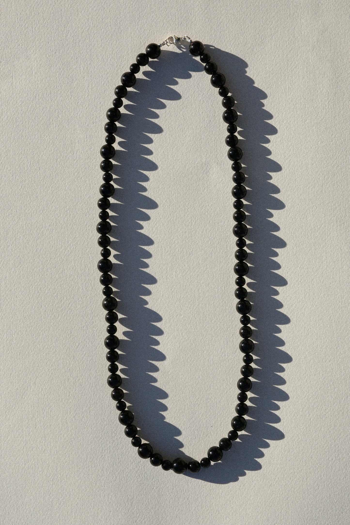 The Felicity Necklace features variated black onyx beads strung along a 75cm length. Finished with the option of 14k gold filled or sterling silver hardware. Handmade to order in Australia.