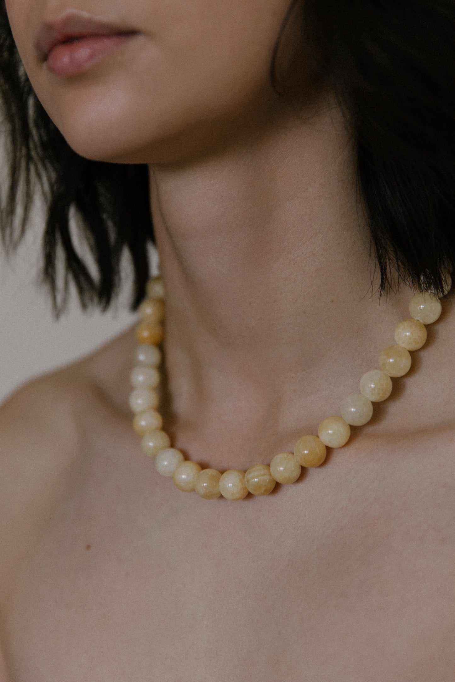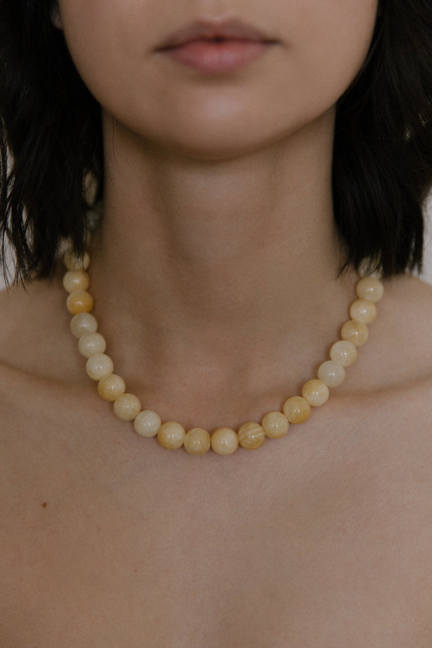 The Daphne Necklace features a strand of yellow calcite gemstones, finished with the option of a 14k gold filled or sterling silver clasp. Handmade to order in Australia.