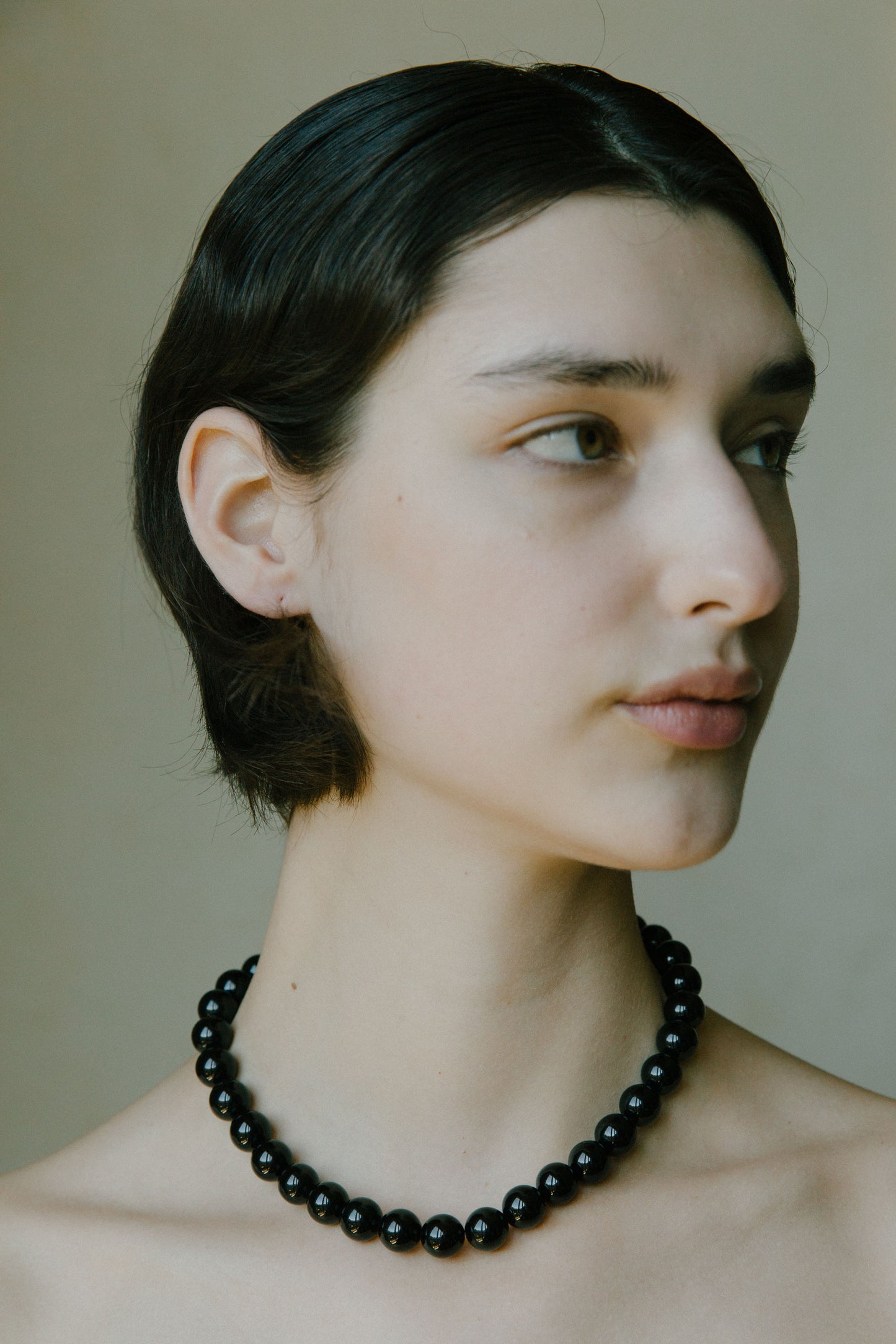The Porter Necklace features a full strand of polished black onyx gemstones, finished with the option of a 14k gold filled or sterling silver clasp. Handmade to order in Australia.