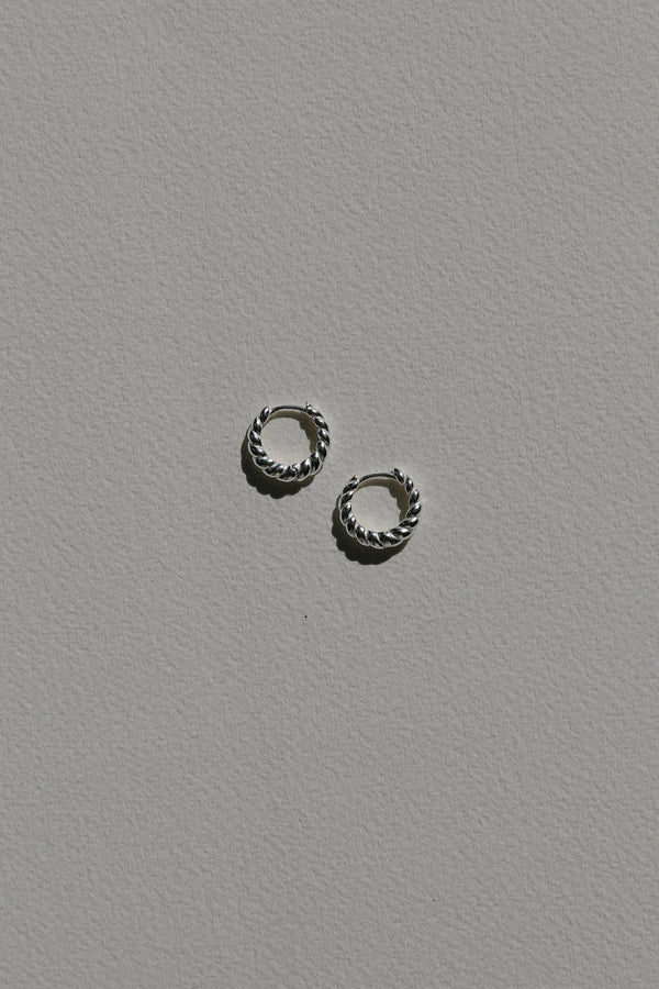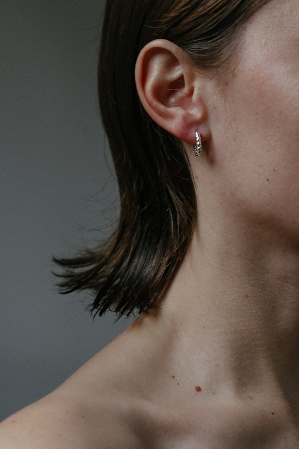 The Claudia Earrings from the Camille Collection: crafted from sterling silver. Individually handmade in Italy, these earrings are approximately 1cm in diameter.