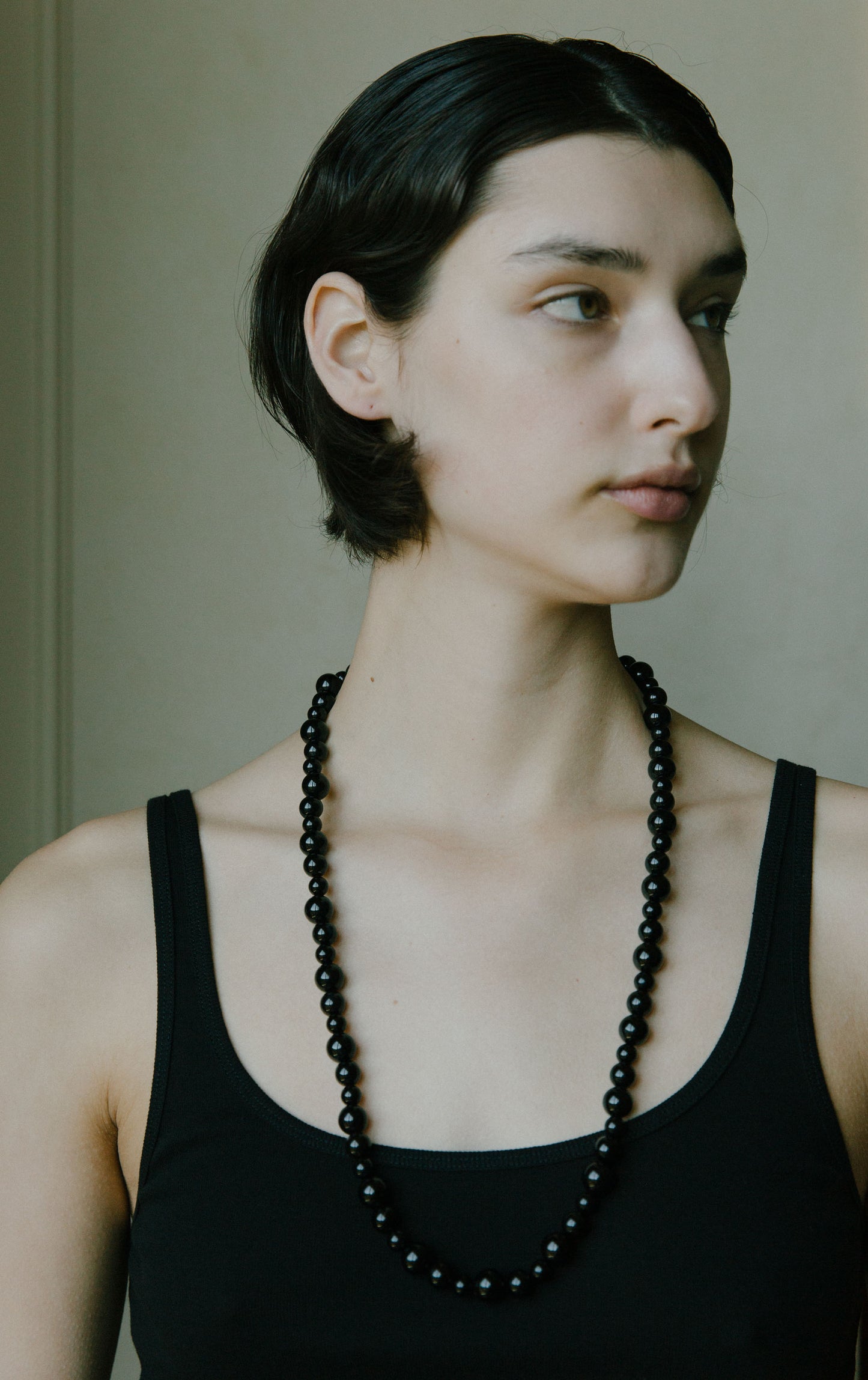 The Felicity Necklace features variated black onyx beads strung along a 75cm length. Finished with the option of 14k gold filled or sterling silver hardware. Handmade to order in Australia.