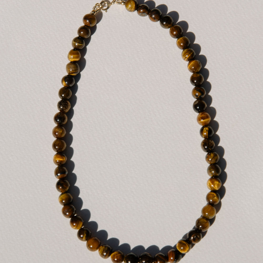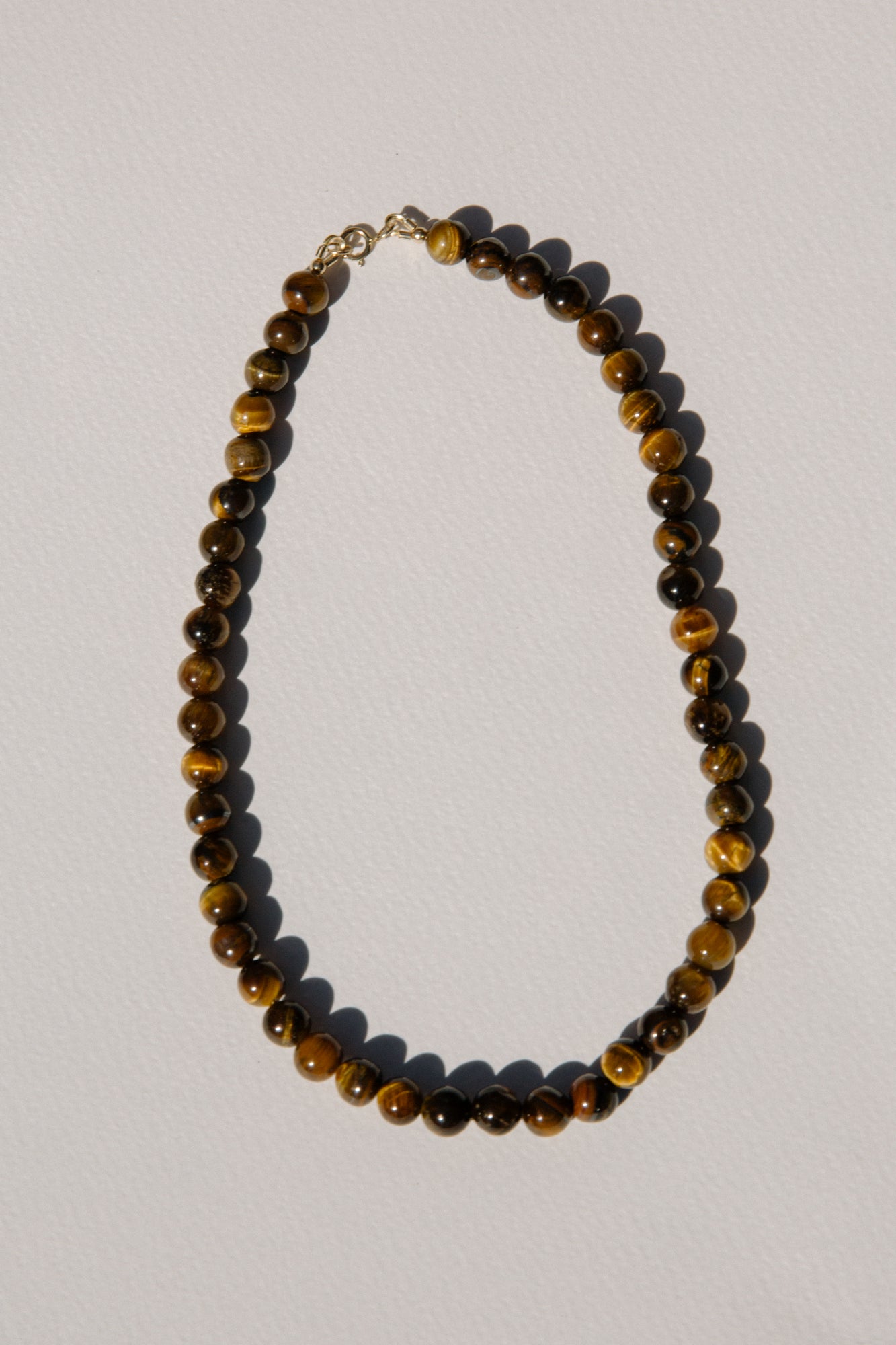 The Margaret Necklace features a strand of tiger eye gemstones, finished with the option of a 14k gold filled or sterling silver clasp. Handmade to order in Australia.