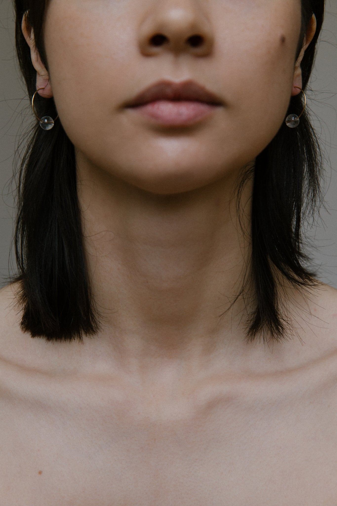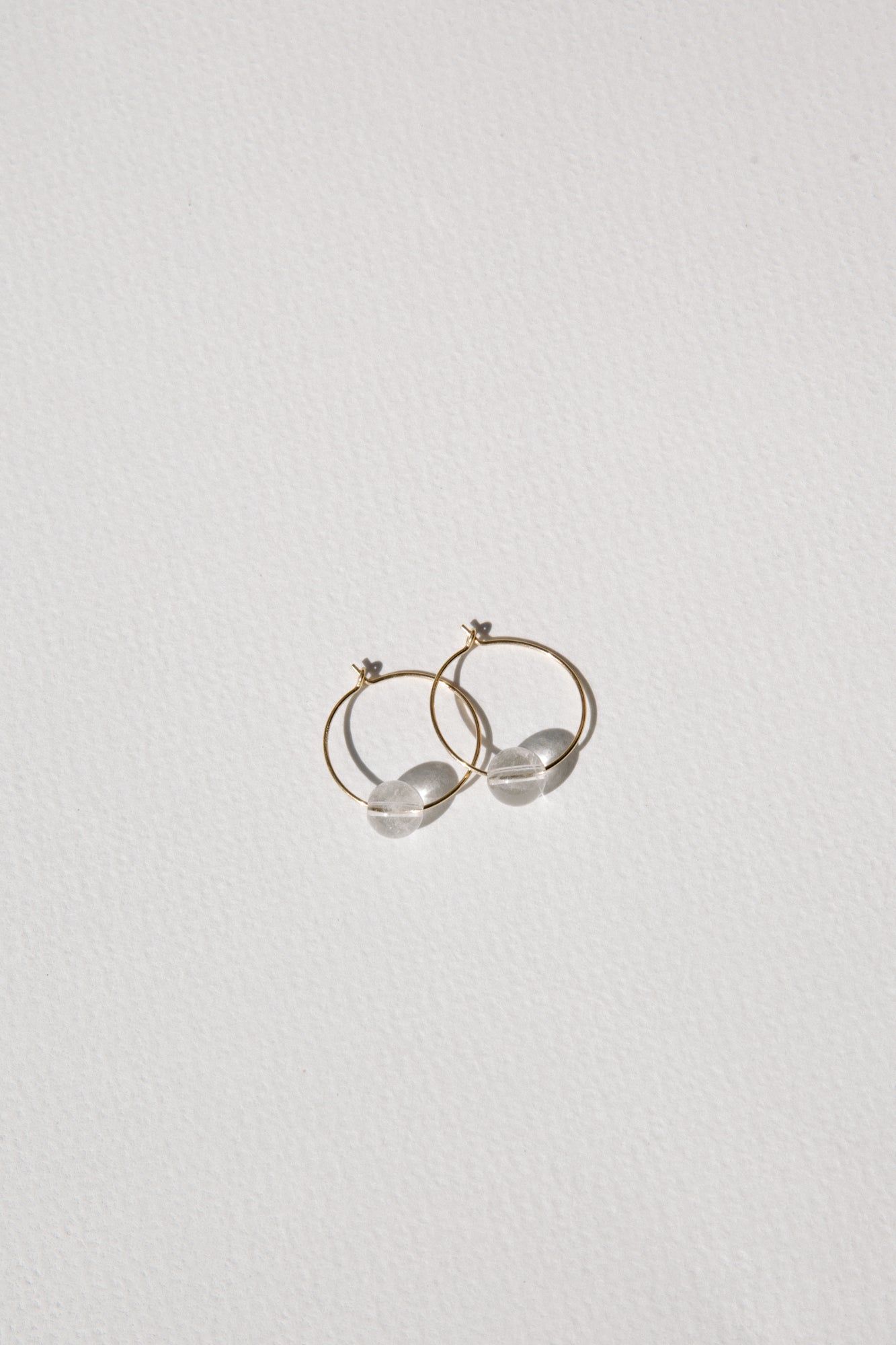 The Tahoe Earrings feature a clear crystal quartz bead threaded onto a fine wire hoop. Finished with the option of 14k gold filled or sterling silver hardware. Handmade to order in Australia.